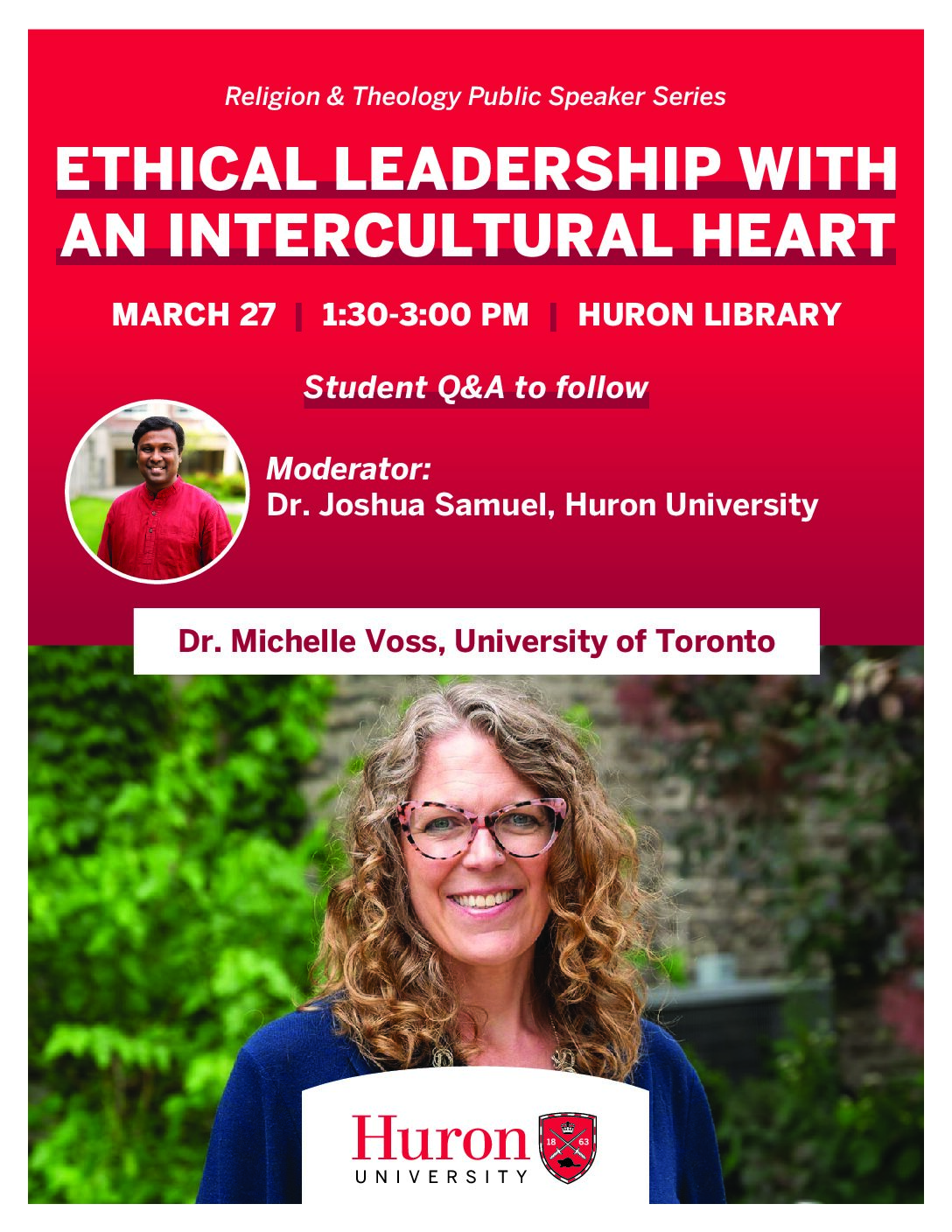 Join us on Thursday, March 27th, in the Huron Library as we welcome Dr. Michelle Voss, who will be giving a free public lecture on envisioning ethical leadership in a global world.