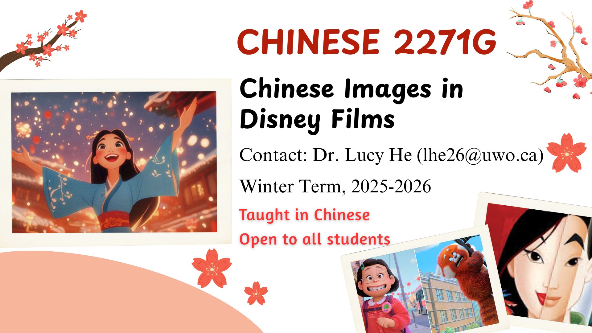 | CHN 2271G – Special Topics: Chinese Images in Disney Films | He | 550 |