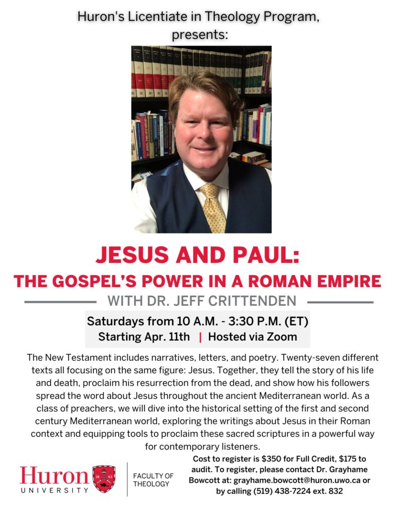 Huron’s Licentiate in Theology Program has entered into an agreement which each of these sister institutions to offer courses that are approved by Huron’s Faculty of Theology Committee and accept as full credit courses in our LTh Program.