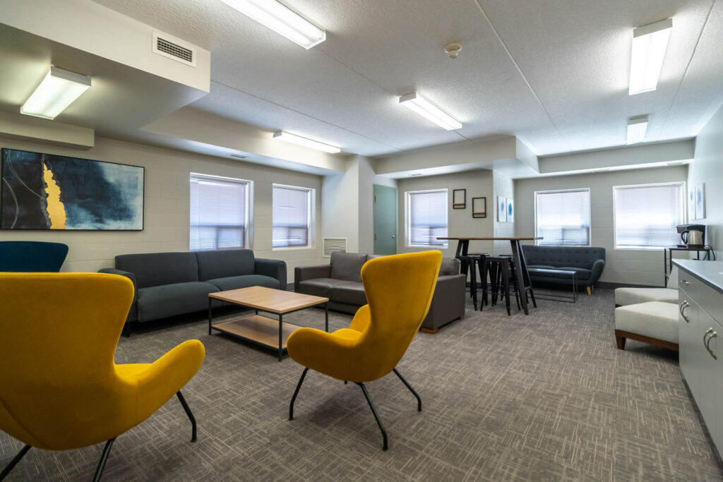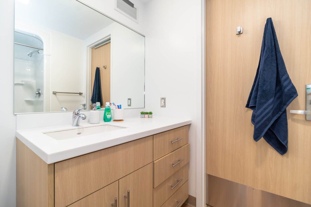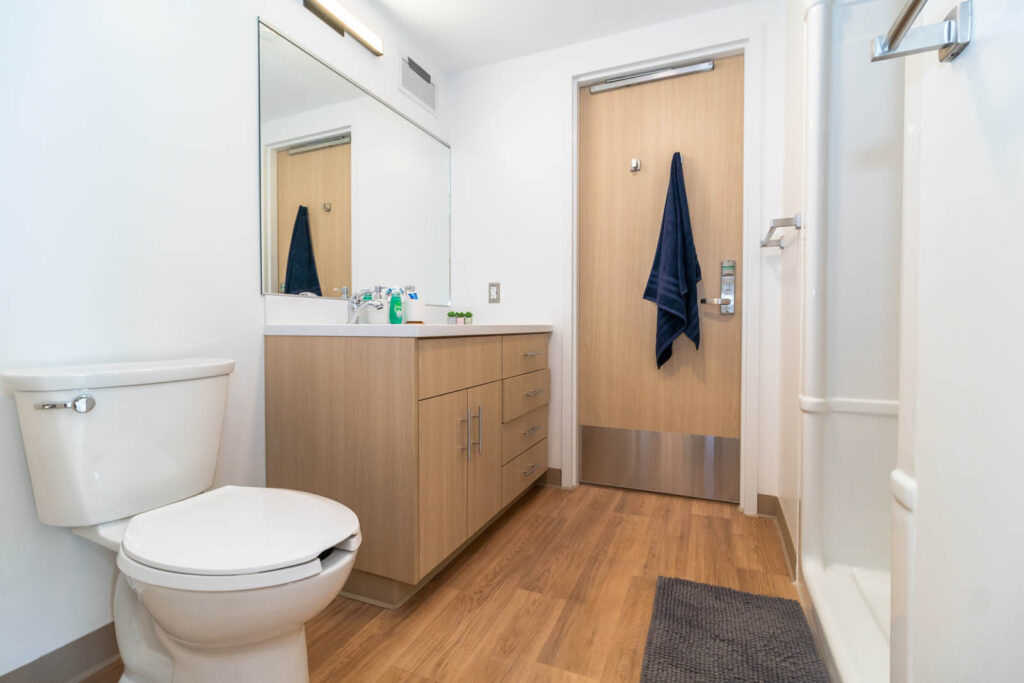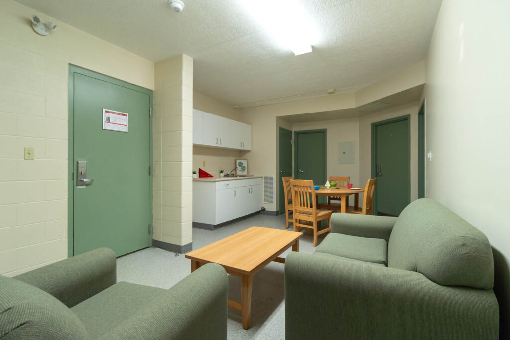 Co-ed: Burnlea, Huron’s newest residence, has one semi-private ensuite washroom located between every two single bedrooms. Students in neighbouring rooms will share a washroom at a 1:2 person ratio. Each residence floor also has one additional common, gender-neutral washroom.