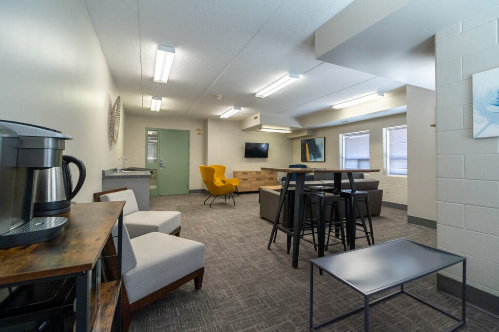 in one of the many lounges, play ping pong, watch a movie and chill with friends, all while living on-campus!